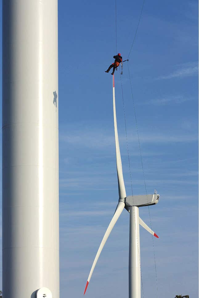 - Nacelle (kule üstündeki kafa kısmı), hub (kanatların bağlantı noktası), rotor blades (kanatlar) ve tower (kule) içindeki merdivenlerde meydana gelebilecek kazalar durumunda yapılması gereken kurtarma tekniklerinin uygulamaları