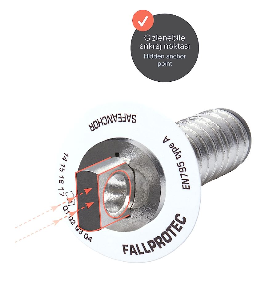 SafeAnchor estetiğe önem veren tesisler için yaylı ve güvenli bağlantı noktası oluşturan bir aparattır. SafeAnchor beton içine gömülür, ankraj gözü basit bir hareketle açılmaktadır.