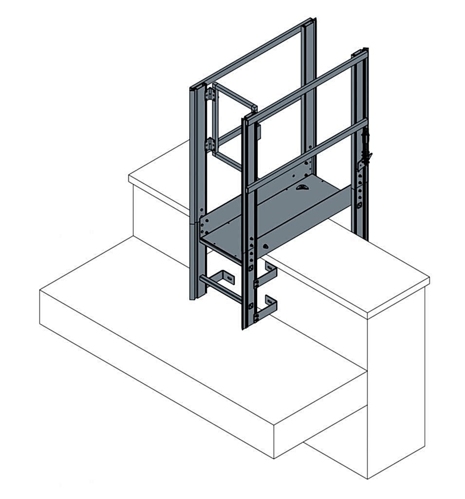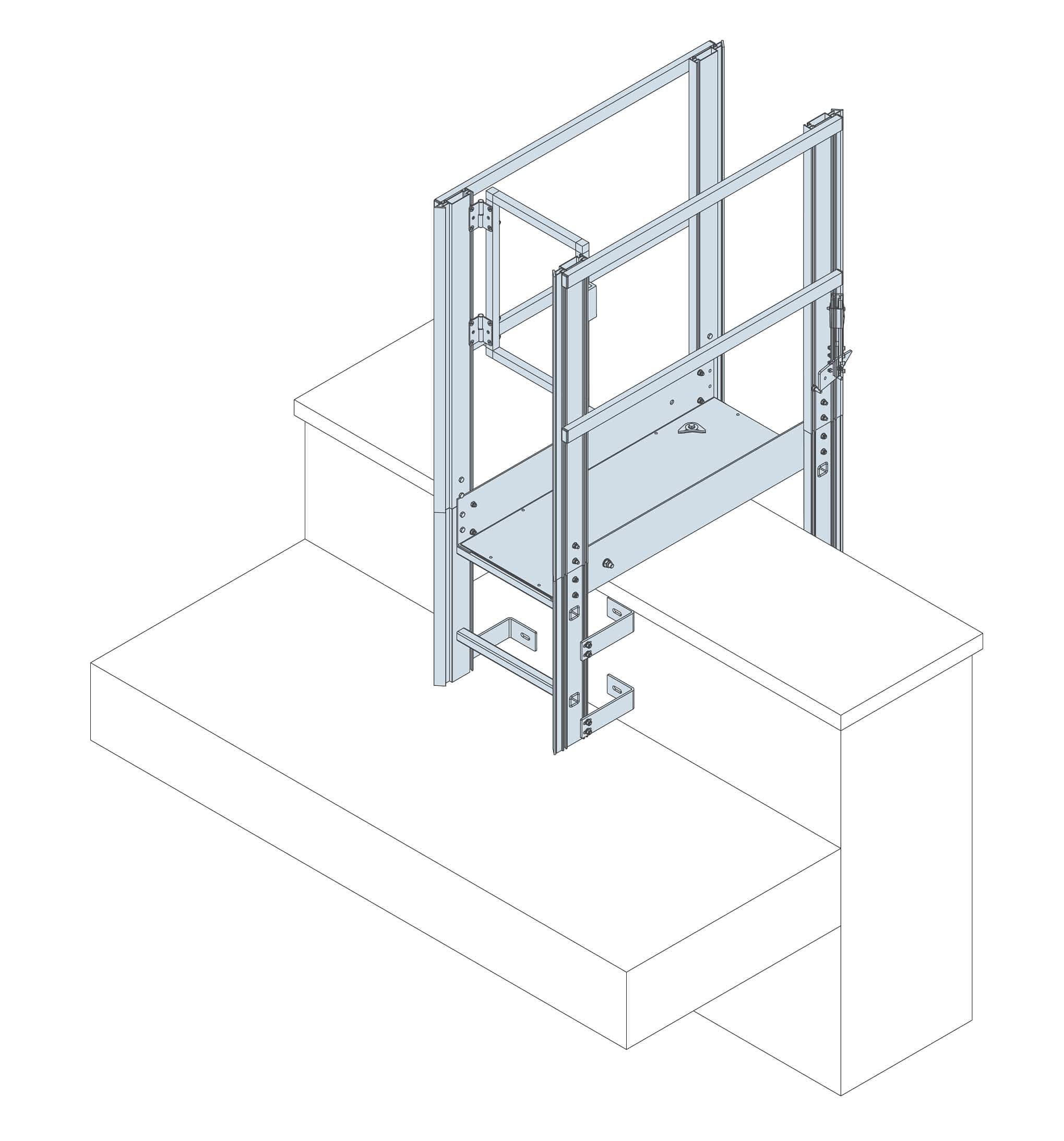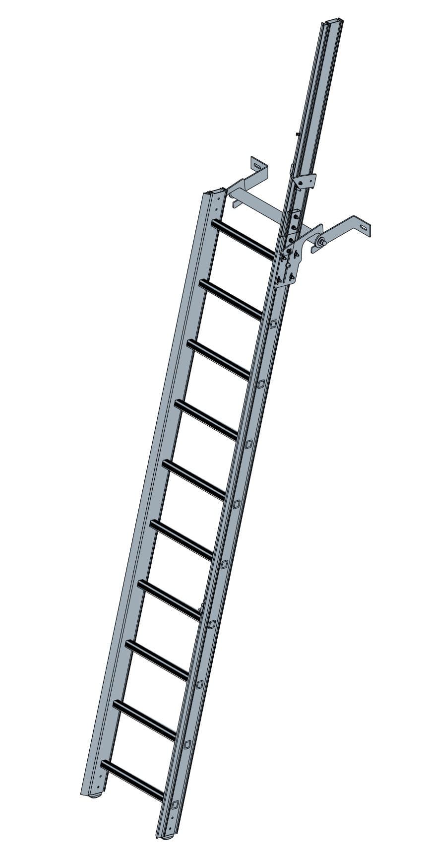 Kullanıcı, tam donanımlı bir emniyet kemeri ile dikey merdivene entegre olan düşme önleyici raya doğrudan bağlıdır.