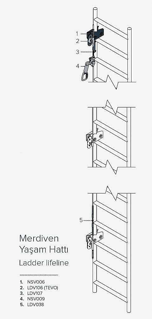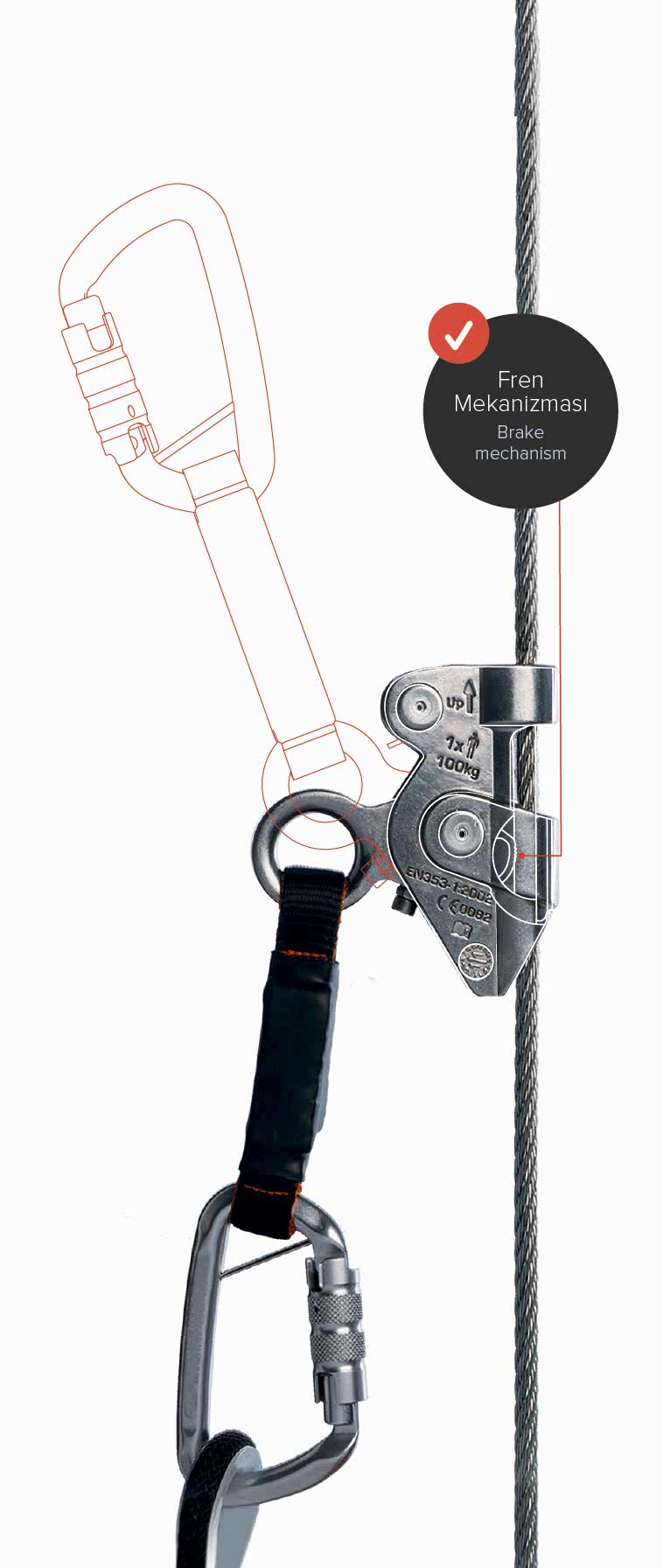 SecuRope Dikey, şaryo bağlantısı sayesinde güvenli erişim sağlar. Kısa düşme yüksekliği için kullanıcıya yakın mesafededir.