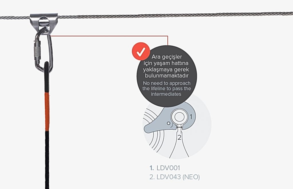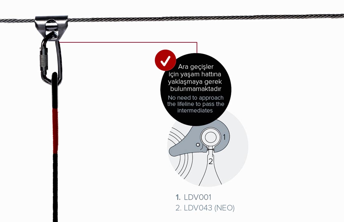 Ara ankrajlardan takılmadan rahatça geçilmesi imkanı vardır. Son kullanıcı serbestçe yasam hattından çıkmadan hareket eder, iki hareketle açılır.